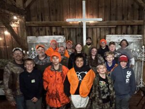 October 7-9th was the annual Youth Hunt for our Wisconsin Kicking Bear group of mentors and mentees. Our amazing hosts Denny and Melanie Simon welcomed the group up to Hixton, WI on Friday night and you could feel the excitement in the air as 8 young hunters got settled in while connecting with each other over a pizza dinner. The group was a great mix of some seasoned hunters, as well as several kiddos going out on their first hunt ever! Sarge Symons led the group in a safety meeting and did a great job of getting the whole group focused on staying safe and also being reminded to take good shots for a clean harvest. We were incredibly blessed this year with hundreds of years of wisdom and experience from our 11 mentor guides. This experience combined with the generous donation of land to hunt on created the perfect recipe for a successful hunt for the youth. After our safety meeting the whole crew got tucked in early as visions of monster bucks filled the minds of a very eager hunting party.