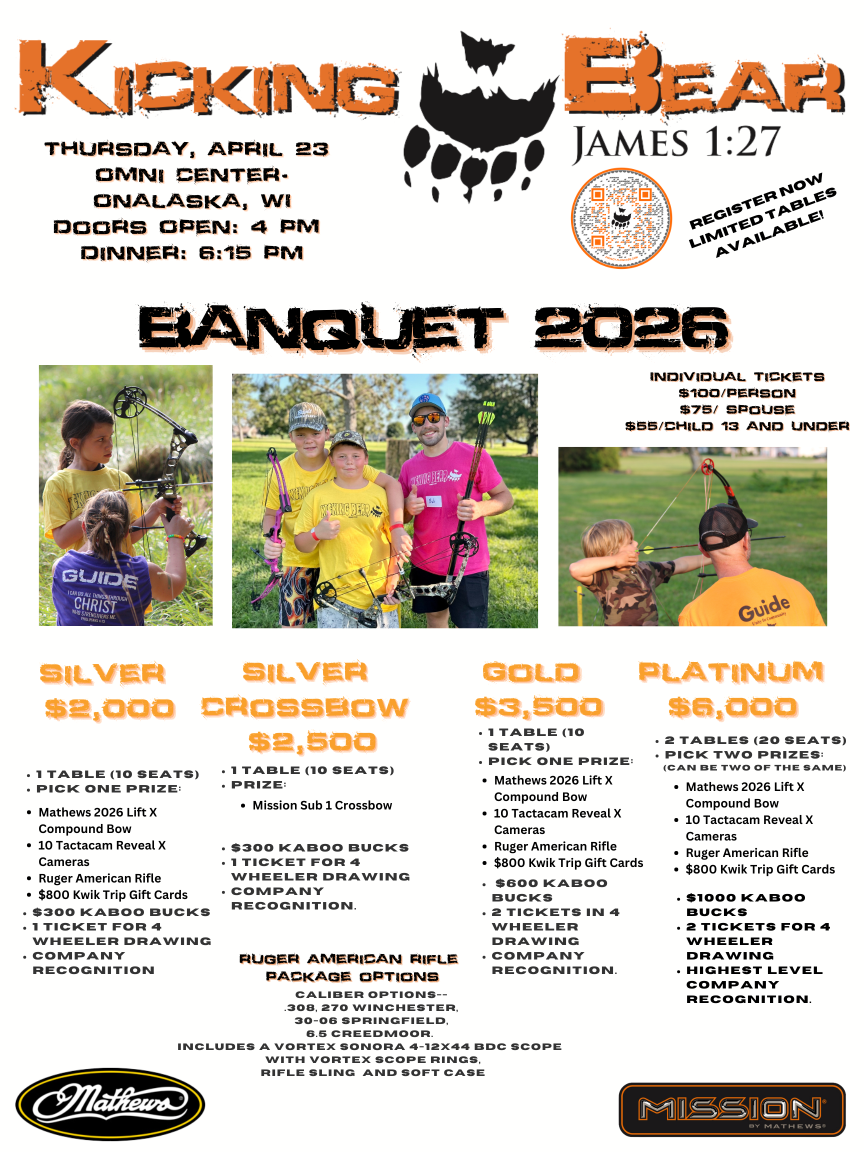 Any questions about Table Sponsorships please email info@kickingbear.org, thank you!