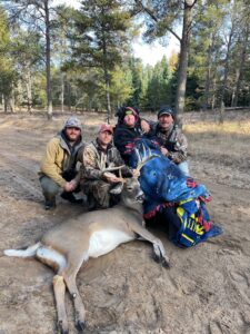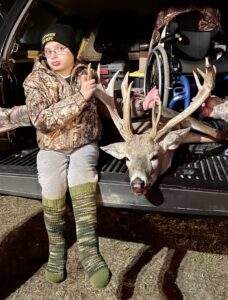 The hunting started off with a bang as Gavin brought home a monster! His buck weighed in at 287 lbs and he had set the bar high for the weekend. His buddy Carson was hot on his heels with a big boy nicknamed “Moose” because of his webbed rack. Carson was all smiles as his friend Craig helped guide him through the hunt and he got to share his monster buck with his family!