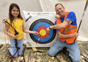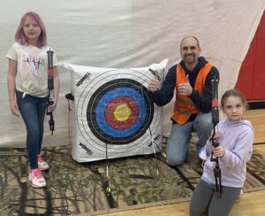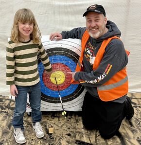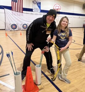 Our next school stop was at the Northside Elementary School also in La Crosse, WI. Northside uses a year-round school schedule so they were actually on one of their mini breaks for the year. This meant that we got to be an exciting opportunity for students in grade K-5 for two mornings in a row! We had one-hour sessions with the kiddos and they were split into three groups based on age/grade levels. We set up our archery course, tomahawk station and some arts and crafts. The first day we talked to students about three things, their foundation, their form and having fun. After a safety meeting our groups started rotating through the activities. We were so blessed to find a full team of volunteers, so every kiddo shooting a bow had their own guide to learn how. It was so awesome and fun to see kiddos find success with the bows and tomahawks, also so cool to spend quality time chatting and making friends at the arts/crafts station too. For many students it was their very first-time shooting archery. Even the teachers were jumping in on the fun! The second day we talked about unity and how awesome it was to see everyone so unified the first day, unified in learning new things, unified in celebrating successes and unified in treating each other with a lot of kindness. Another great day was had by all, but Ray had one more trick up his sleeve. Before we left for the day he convinced the Dean of Students to invite ALL the groups back for a good ole tug of war! You should have heard the war cries in that gymnasium, what a good time and awesome way to celebrate a great two days! All students were sent home with a Kicking Bear backpack and calendar and we made sure they highlighted our local camp dates in those calendars, we would love to see them all at a camp this summer! Huge thank you to the Northside School for inviting us, such a great group of students and staff there. Check out the Kicking Bear YouTube Channel for a video from the Northside event.