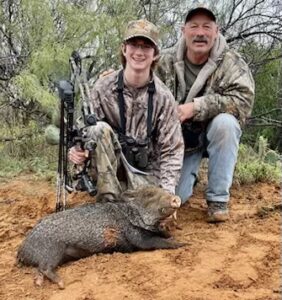 The ranch is an awesome place. Mark has 10,000 acres and it is just crawling with great environment and critters. The kiddos and guides were all so excited for the opportunity to get out and see what the hunts would bring. The first young man to pinch was Casey from Nebraska. He took his Mission bow and after practicing with his camp mates, he made a perfect shot and put an arrow right through a big javelina. You cannot believe the excitement he had and such giant smiles. Was a cool way to start the hunt and bring things back to camp that night.