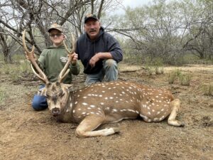 That afternoon they took Cooper to an area where they had seen some big axis deer. Ray was with him and he could not believe these giant deer! Well after sitting for a few, five of those deer came in and only four went back out. Cooper made a great shot and pinched a deer that Ray thought was 10 years old, it was a magnificent critter! And at the same time on the other side of the ranch Mark was out with Grant who pinched a huge Orex. Mark was an incredible guide who went above and beyond to work hard getting kiddos on animals.