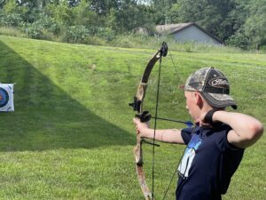 A couple months passed and as we kept spreading the word that Reese was interested in deer hunting a friend from church named Blaine Moe stepped up and offered to guide him on some land he had in Minnesota! Blaine also donated a nice bow to Reese which really fired him up. We gradually started stretching out those shots and turning up the pounds on that bow. Reese was really getting dialed in! As summer hit another friend of Kicking Bear, brother Darren Grefe stepped in and started working with Reese too! Darren helped get Reese through hunter’s safety and they also had a lot of fun shooting cross bow and rifle with friends Riley and Gunner. Reese also stepped up and volunteered for many of our Kicking Bear camps. By the end of summer Reese was ready to go hunting and thanks to brother Darren he could use a bow, cross bow or rifle now!